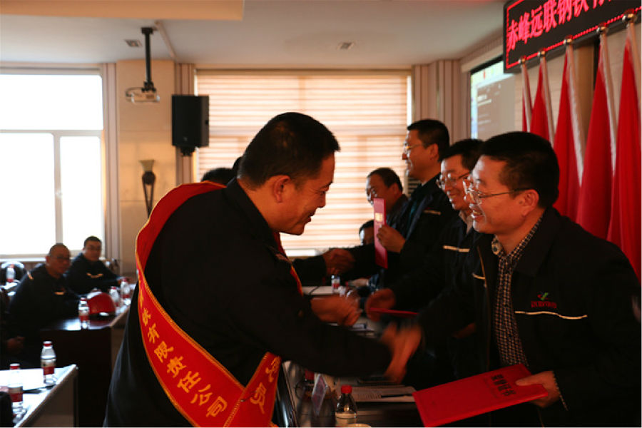 2019年1月22日,赤峰远联钢铁有限责任2018年度工作总结暨2019年工作部署会议在公司五楼会议室召开。公司董事长佟希山、总经理佟国山及公司班子成员出席了会议。公司党委书记刘欣主持了会议。公司副主任以上管理人员和先进单位、先进个人代表共150人参加了本次会议。