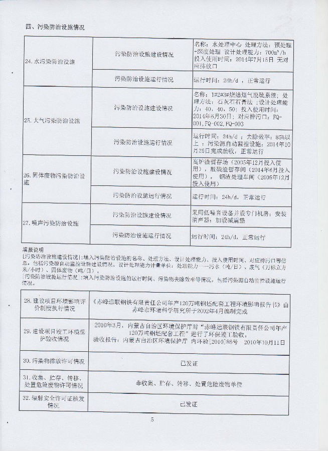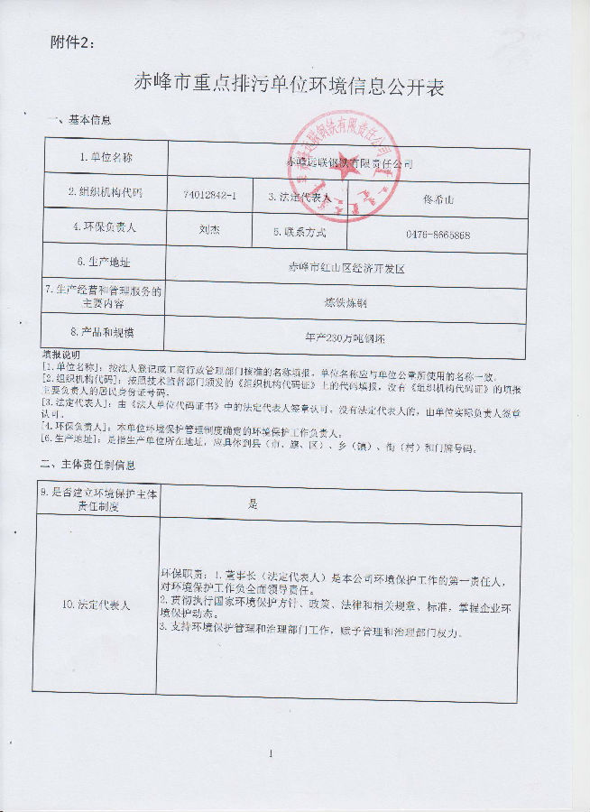 赤峰市重点排污单位环境信息公开表